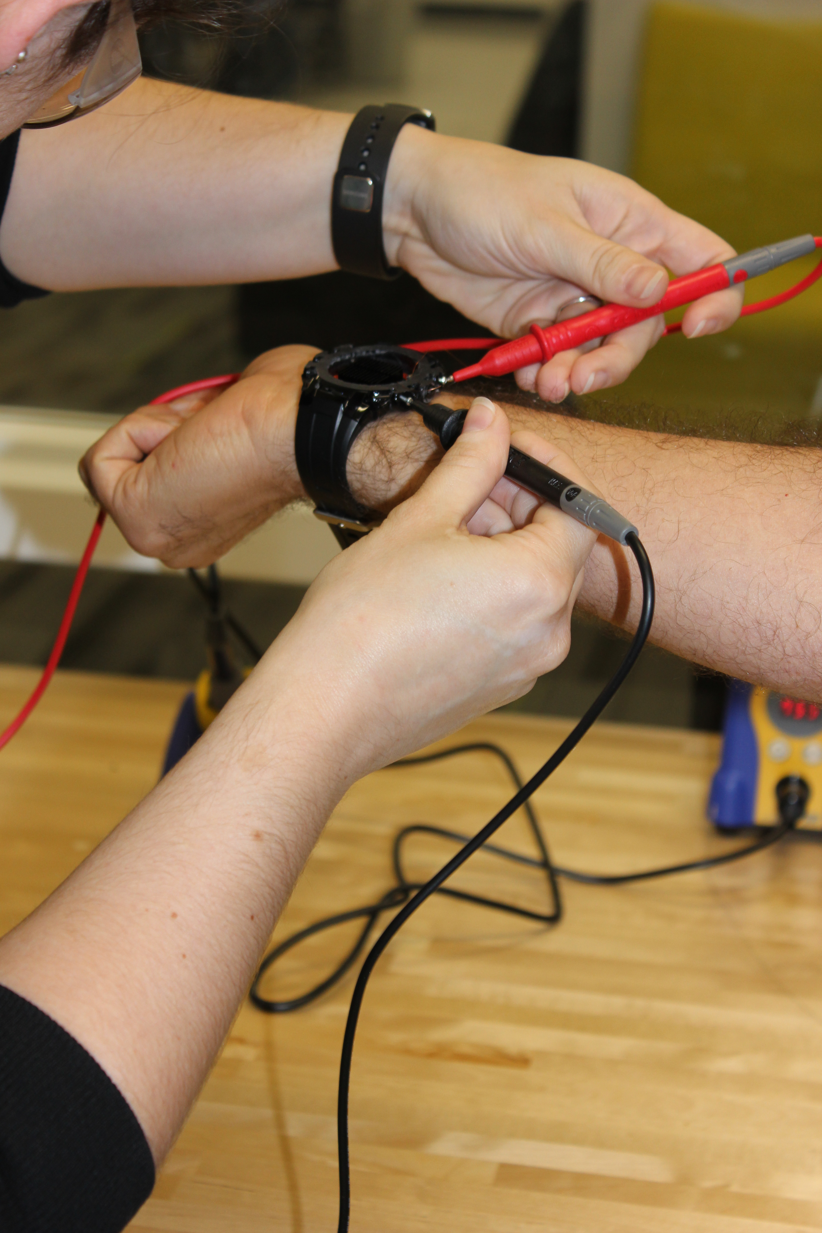What if instead of our energy-producing prowess being used nefariously, we actually did something to benefit humankind? During my internship at ASSIST (Advanced Self Powered Systems of Integrated Technology) my cohort took part a workshop on thermoelectric energy. In a nutshell, a thermoelectric chip can be used to generate electricity using the temperature difference between our skin and the ambient temperature. There is an entire mathematical equation explaining this (which we won’t get into). The chip produces millivolts of energy, which can be used to power low energy devices.